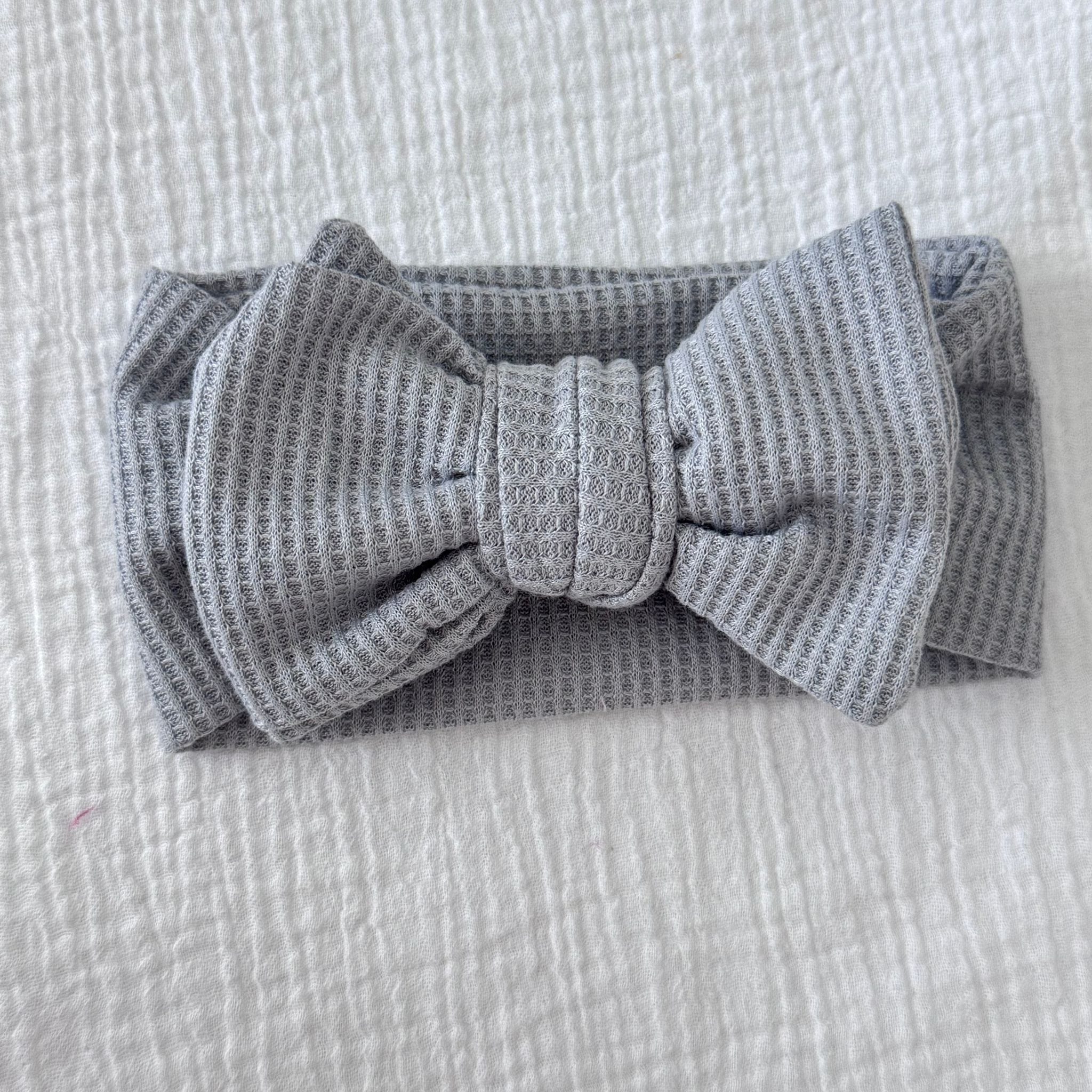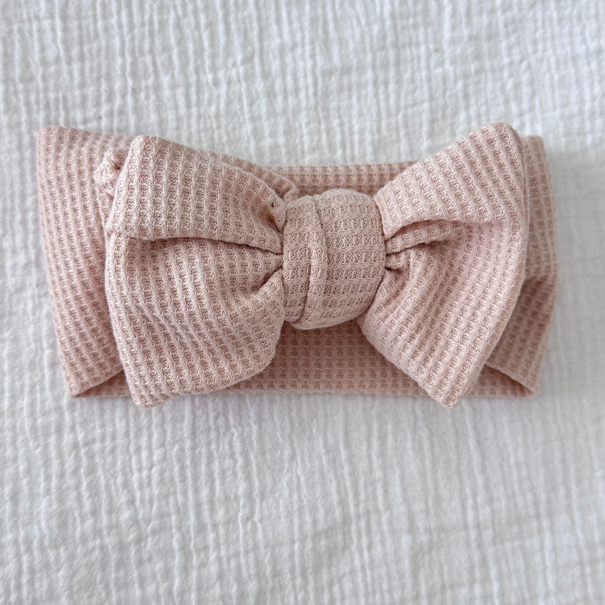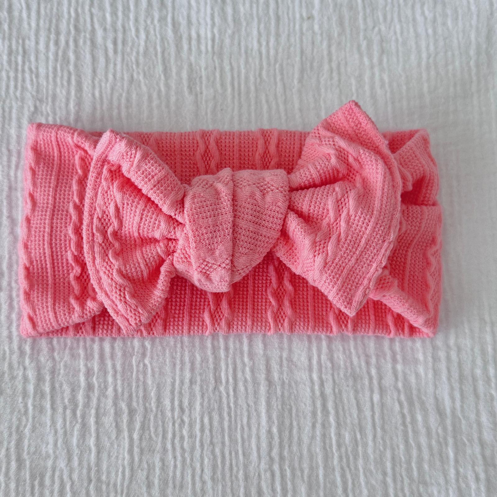 Fitas de cabelo para bebé em malha suave e elástica. Acessórios delicados que não apertam, perfeitos para completar o enxoval com um toque de doçura e estilo.