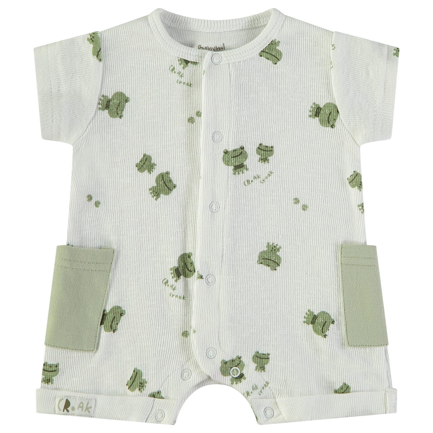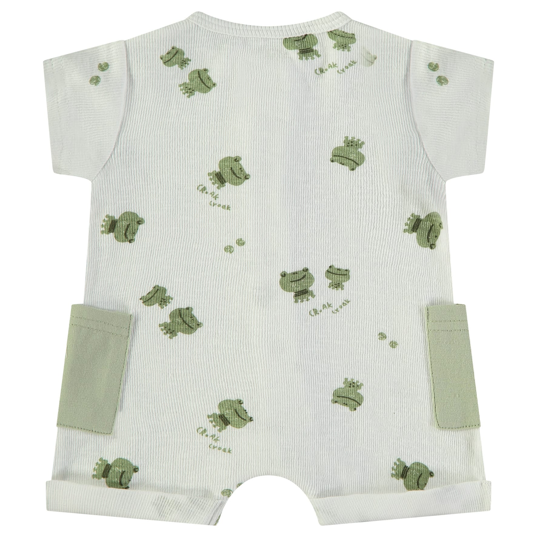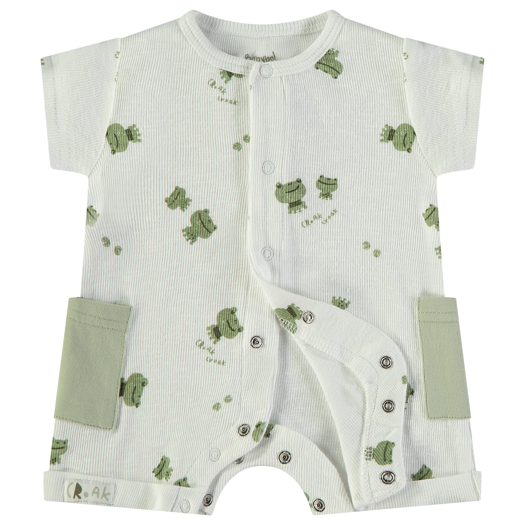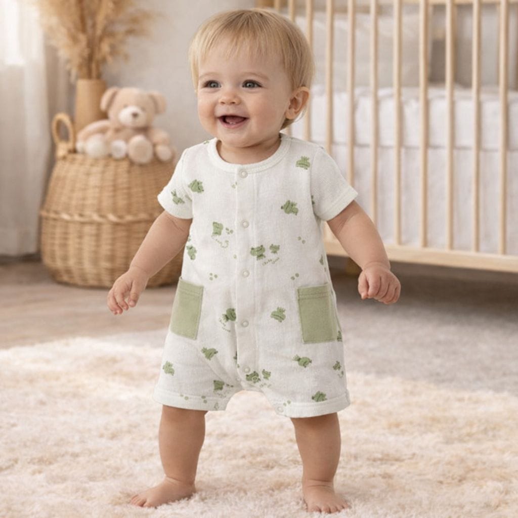 Com padrão subtil de pequenos sapinhos e tons verdes suaves, esta peça transmite leveza e tranquilidade. O tecido macio e fresquinho envolve o bebé com todo o conforto, enquanto o design prático facilita na hora de vestir.