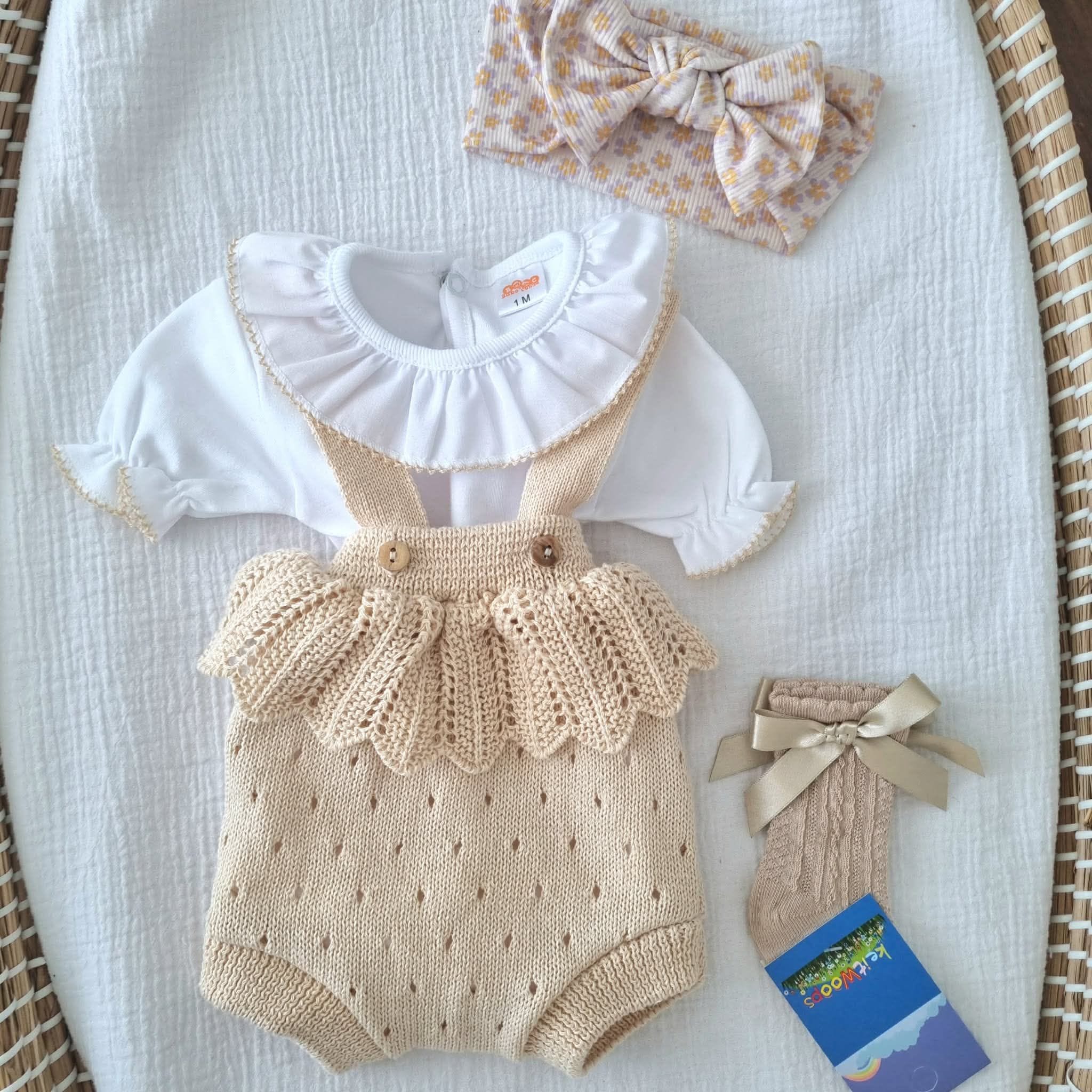 Nota Importante: O body, os sapatos e as fitas de cabelo apresentados nas imagens são vendidos separadamente, permitindo-lhe criar combinações personalizadas para o enxoval do seu bebé.